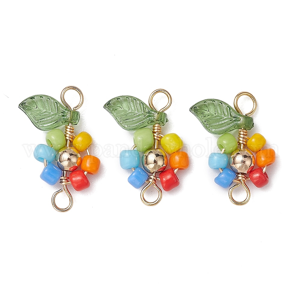 Подвески-соединители из стеклянной медной проволоки, цветочные звенья с позолоченными латунными бусинами