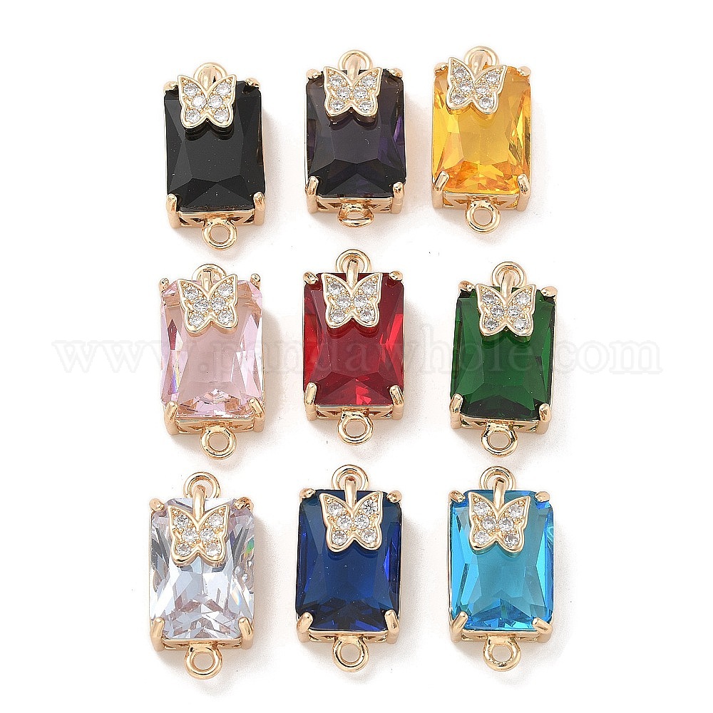 • (52) Непрозрачная лаванда Латунные паве граненые стеклянные прямоугольные соединители подвески, без кадмия, без никеля и без свинца, прозрачные кубические циркониевые звенья-бабочки, золотой свет, разноцветные, 21x10x9 мм, отверстие : 1.6 мм