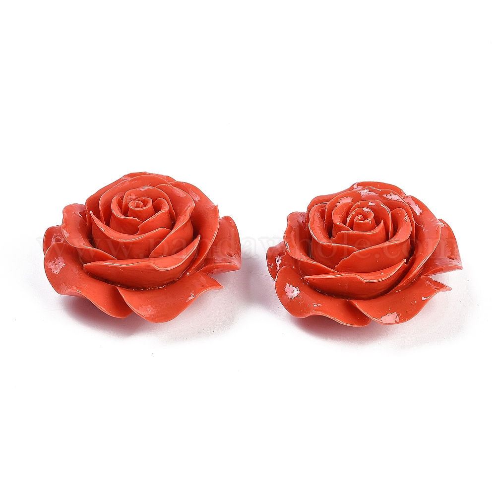Подвески-коннекторы в виде резных цветов, окрашенных в синтетический коралл