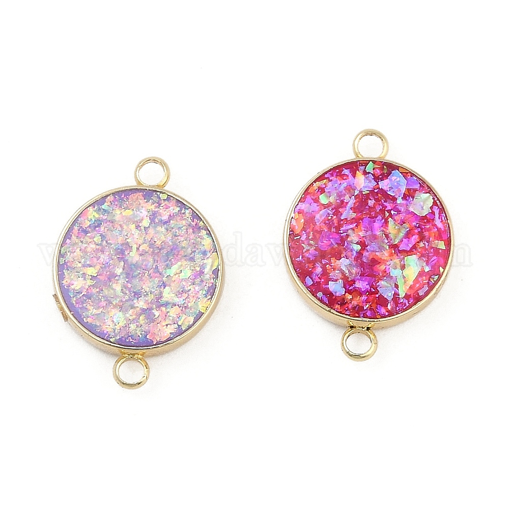 • Фуксиновый Стойка покрытие латунь плоские круглые соединители подвески с синтетическим опалом, долговечный, золотые, красно-фиолетовые, 18.5x13x4 мм, отверстие : 1.8 мм