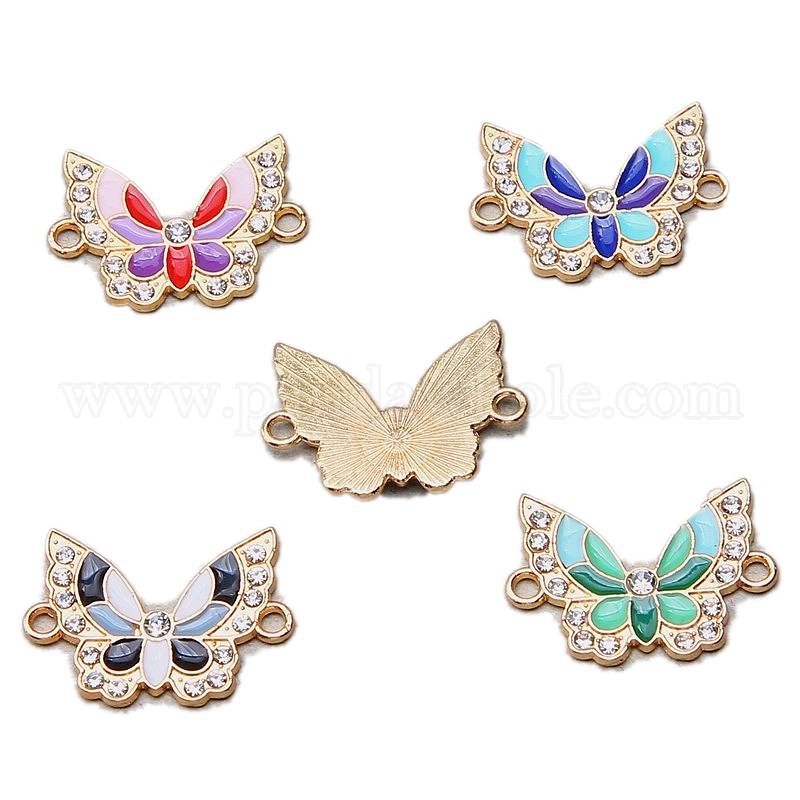 100шт. сплав эмалированные бабочки-соединители подвески, с кристально горный хрусталь, золотой свет