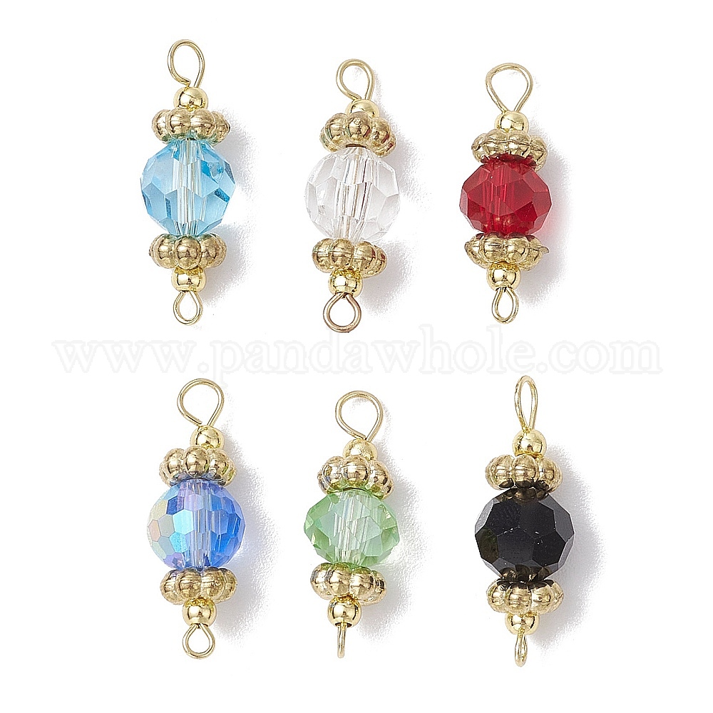 6 шт 6 цвета граненые круглые стеклянные соединительные подвески, с 304 двойными петлями из нержавеющей стали, золотые