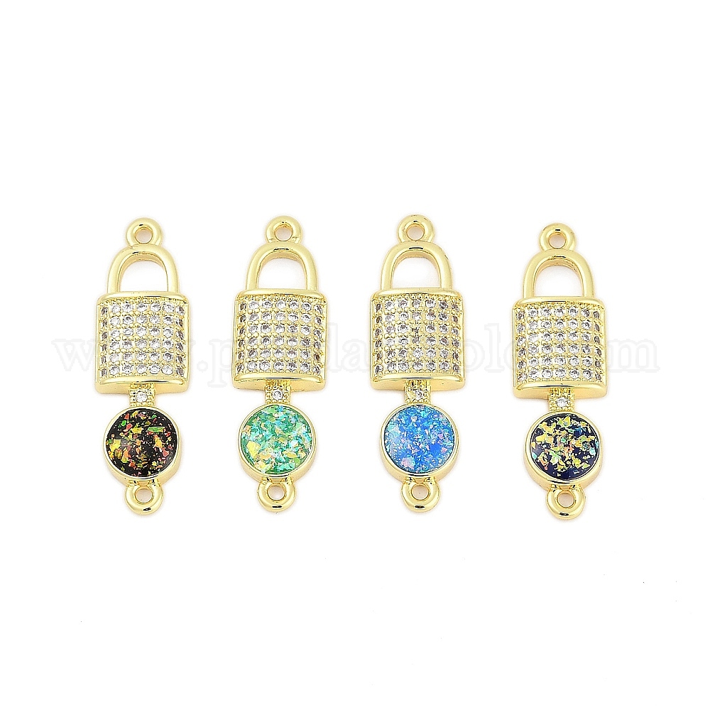 Латунные микро-паве прозрачные кубические цирконии замки-соединители подвески, с синтетическим опалом, стойки покрытие, без кадмия и без свинца, долговечный, разноцветные