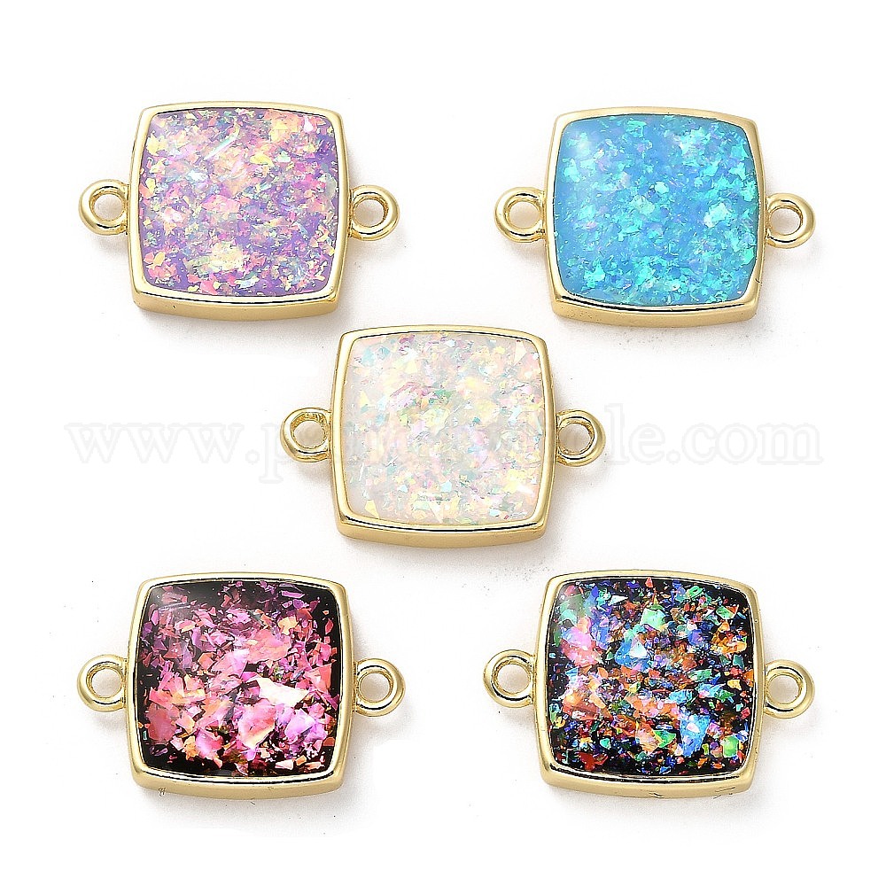 Подвески квадратные с соединителями из латуни с паве из синтетического опала, золотые, стойки покрытие, долговечный