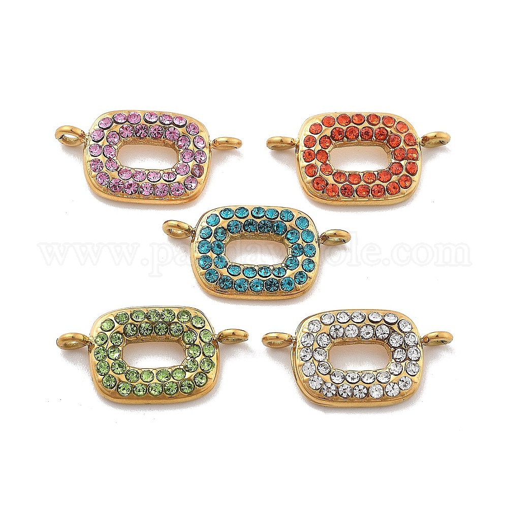 304 подвески из нержавеющей стали со стразами, прямоугольные, ионное покрытие (ip), реальный 14 k позолоченный