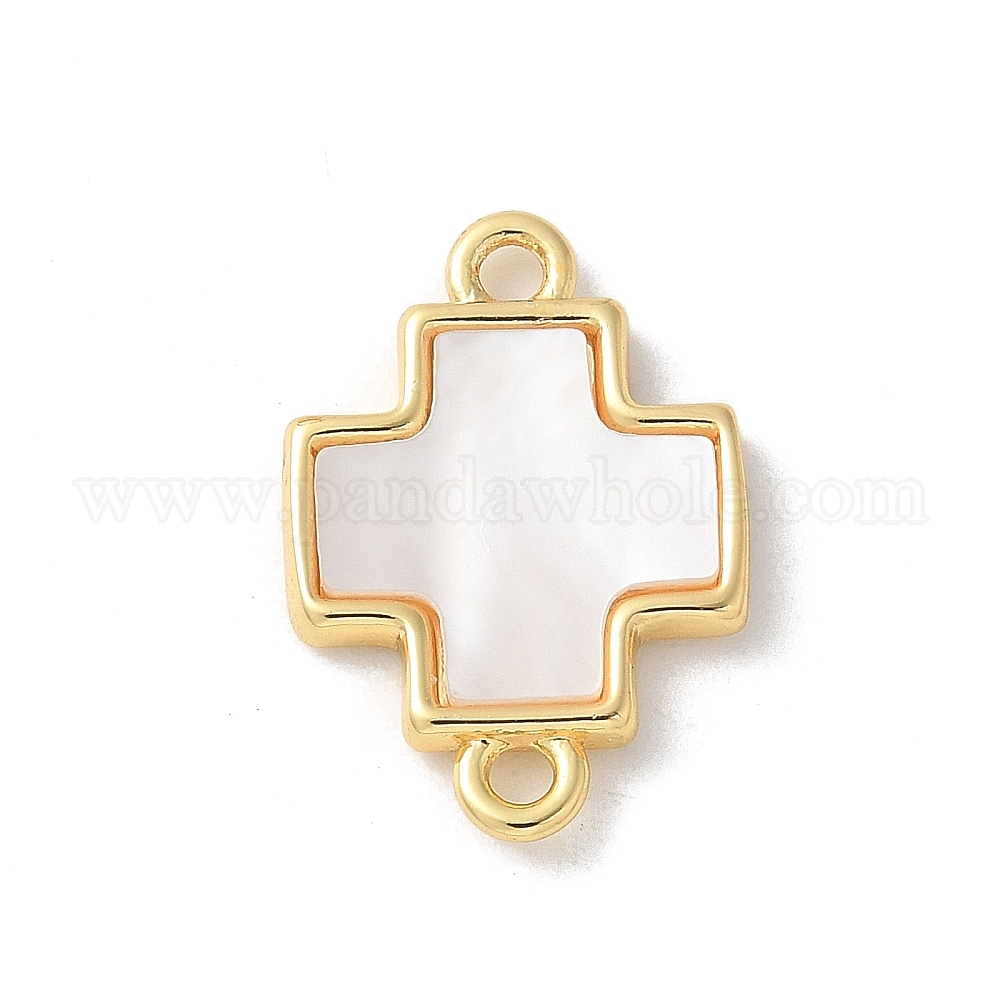 Естественные белые шармы разъема оболочки, без кадмия, без никеля и без свинца, с латунной фурнитурой , крестик