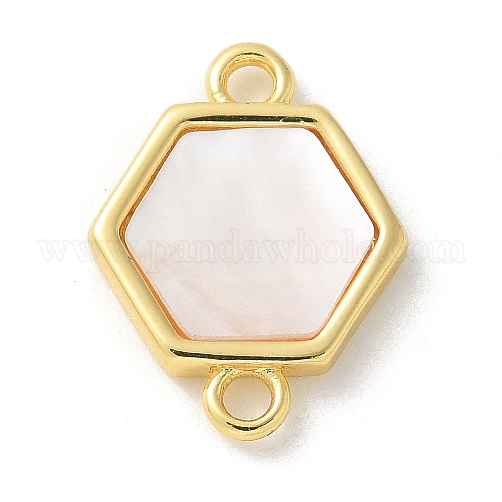 Естественные белые шармы разъема оболочки, без кадмия, без никеля и без свинца, с латунной фурнитурой , шестиугольник