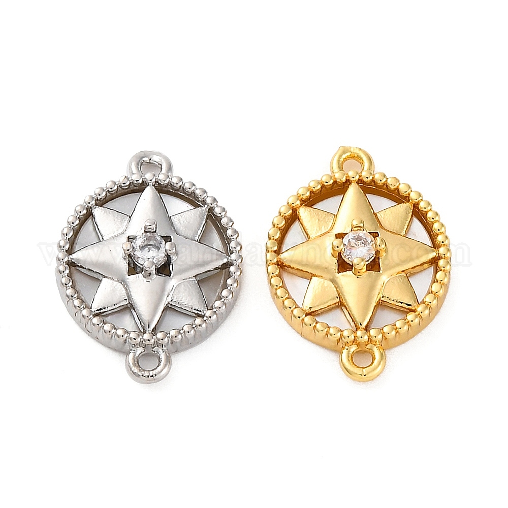 Латунные прозрачные подвески из кубического циркония, с натуральной белой оболочкой, без кадмия, без никеля и без свинца, плоские круглые со звездой