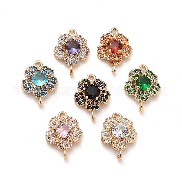 Подвески для стеклянных разъемов, звенья из латуни с прозрачным кубическим цирконием, без кадмия, без никеля и без свинца, разноцветные (0311AP)