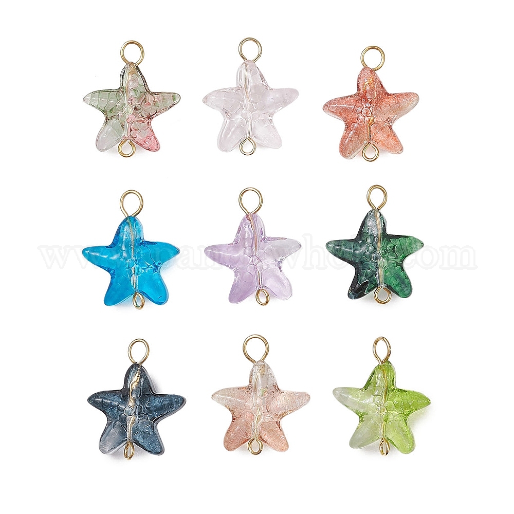 Морская звезда градиент цвета краска для выпечки прозрачное стекло соединительные подвески, с 304 петлями из нержавеющей стали с ушками