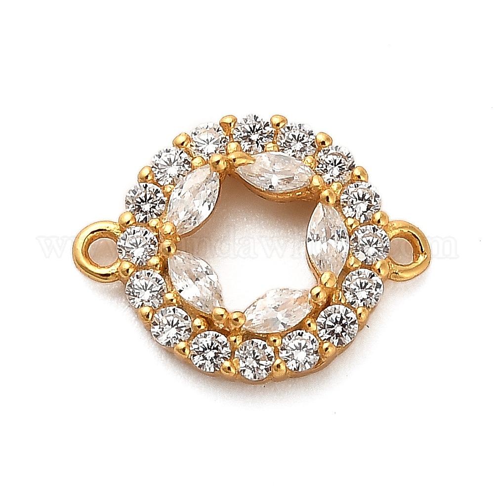 • Золотой 925 подвески-коннекторы из стерлингового серебра с прозрачным кубическим цирконием, кольцо прелести, с печатью 925, золотые, 10x13x3 мм, отверстие : 1 мм