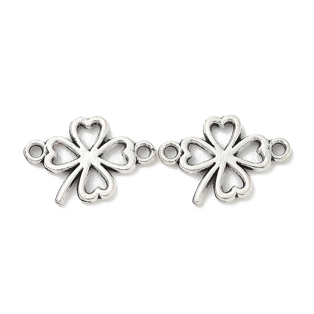 • Античное Серебро Тибетский стиль сплав полые клеверные соединительные подвески, античное серебро, 11x16.5x1.5 мм, отверстие : 1.4 мм