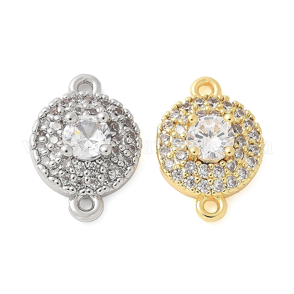Шармы-соединители из латуни с микропаве из кубического циркония, без кадмия, без никеля и без свинца, плоско-круглые