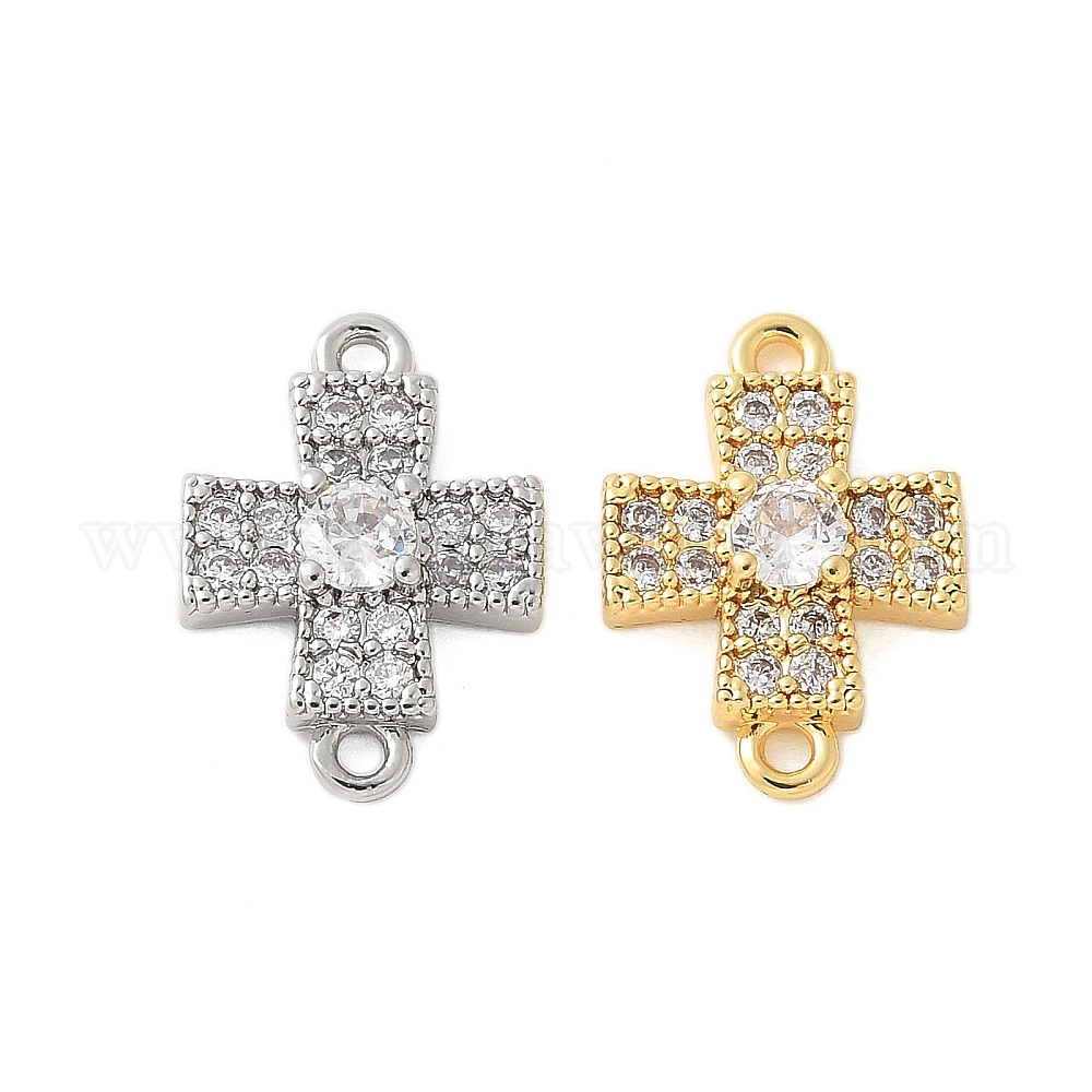 • Платина Шармы-соединители из латуни с микропаве из кубического циркония, без кадмия, без никеля и без свинца, крестик, платина, 13.5x9.5x3 мм, отверстие : 1.2 мм