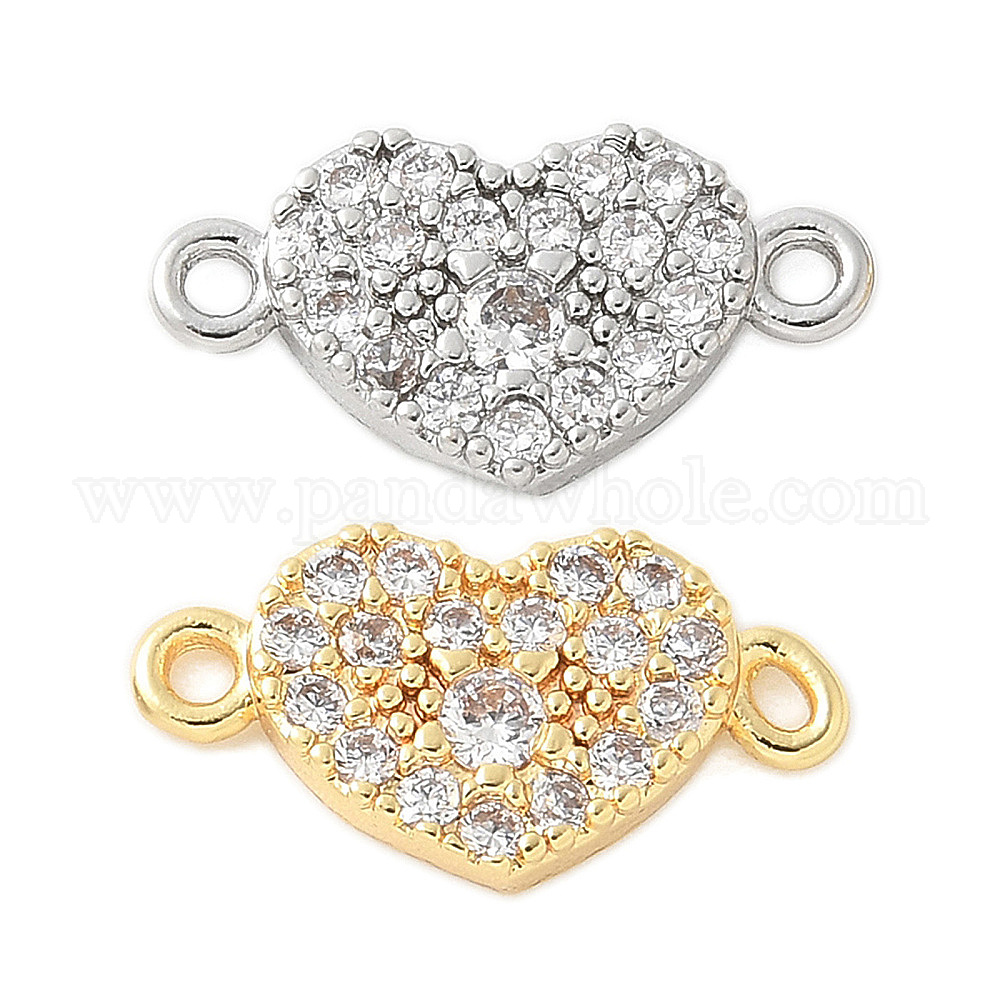 Шармы-соединители из латуни с микропаве из кубического циркония, без кадмия, без никеля и без свинца, сердце