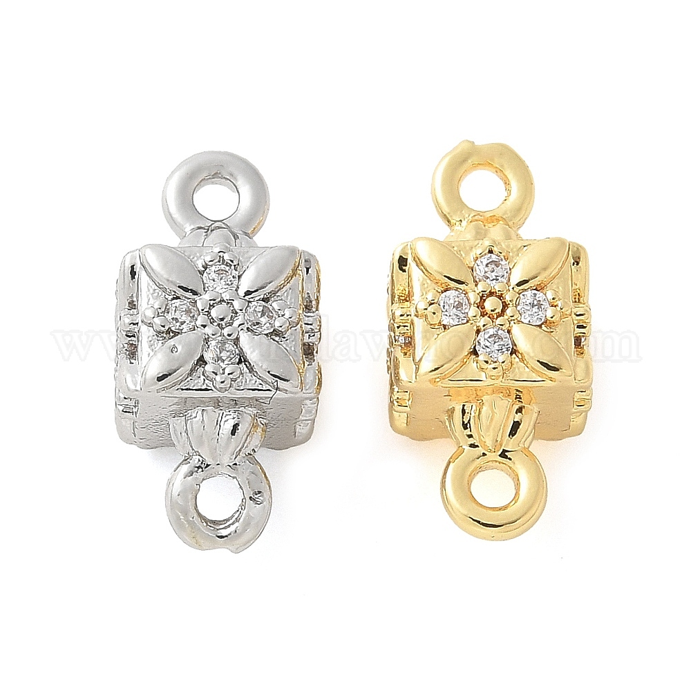 Шармы-соединители из латуни с микропаве из кубического циркония, без кадмия, без никеля и без свинца, Кубик с цветком