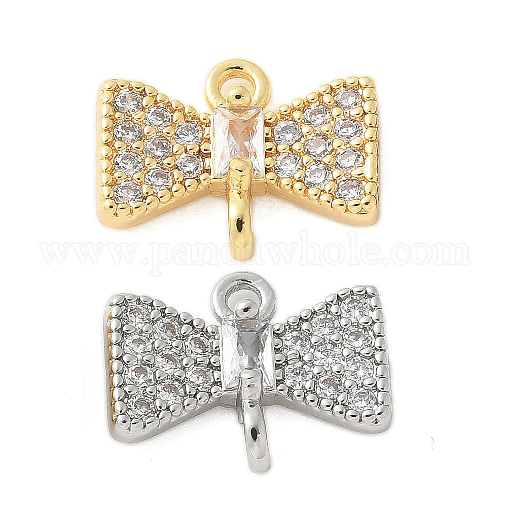 Шармы-соединители из латуни с микропаве из кубического циркония, без кадмия, без никеля и без свинца, бантом (03189Z)