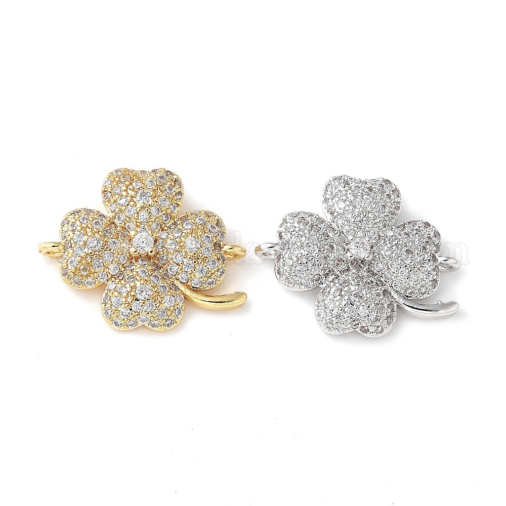 Шармы-соединители из латуни с микропаве из прозрачного кубического циркония, клевер, без кадмия и без свинца, долговечный, стойки покрытие