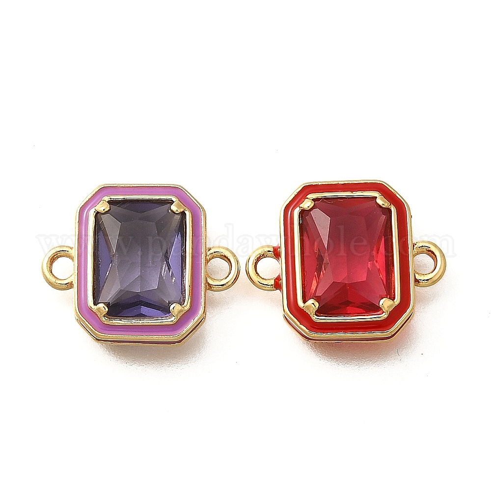 • Фиолетовый Латунные подвески-соединители из стекла в форме прямоугольника, реальный 18 k позолоченный, без кадмия и без свинца, долговечный, стойки покрытие, фиолетовые, 11x14x4 мм, отверстие : 1.5 мм
