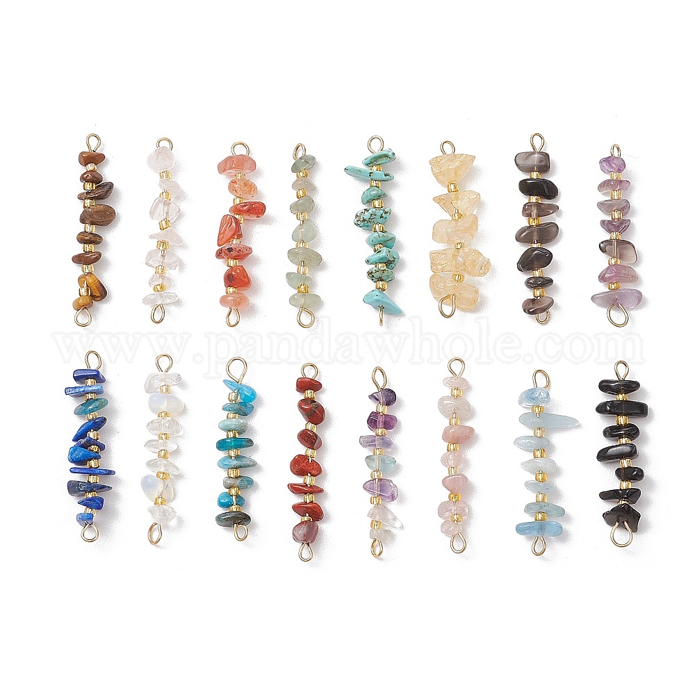 • Золотой 16 шт. 16 стили натуральные смешанные каменные крошки и стеклянные бусины соединительные подвески, с 304 двойными петлями из нержавеющей стали, золотые, 34.5~35.5x7.5~8x7 мм, отверстие : 8 мм, 1 шт / стиль