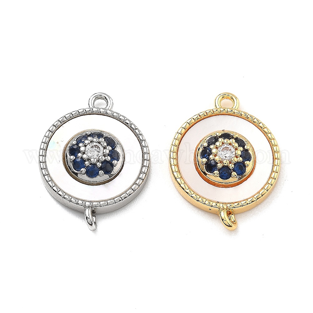 Подвески-соединители из латуни с микропаве из синего кубического циркония и ракушки, без кадмия, без никеля и без свинца, плоско-круглые