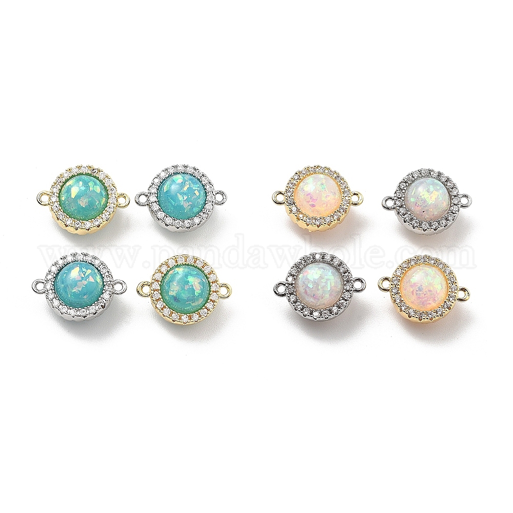 Латунные микро-паве прозрачные кубические цирконии плоские круглые соединительные подвески, без кадмия, без никеля и без свинца, с синтетическим опалом