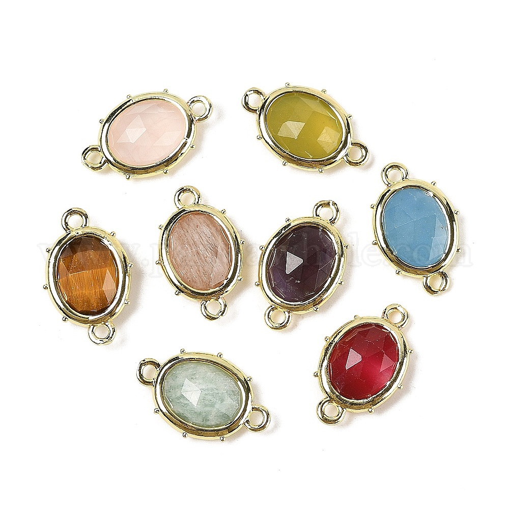 Натуральные драгоценные камни ограненные овальные подвески-коннекторы, с реечной обшивкой латунными выводами, золотые