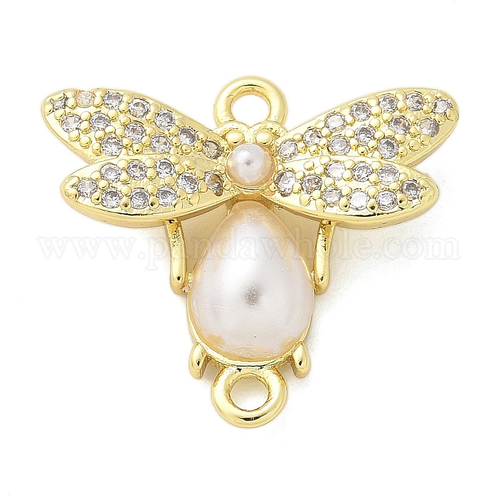 Шармы-соединители из латуни с микропаве из кубического циркония, прелести пчел, с ABS имитации жемчуга, стойки покрытие, долговечный, без свинца и без кадмия (031KKP)