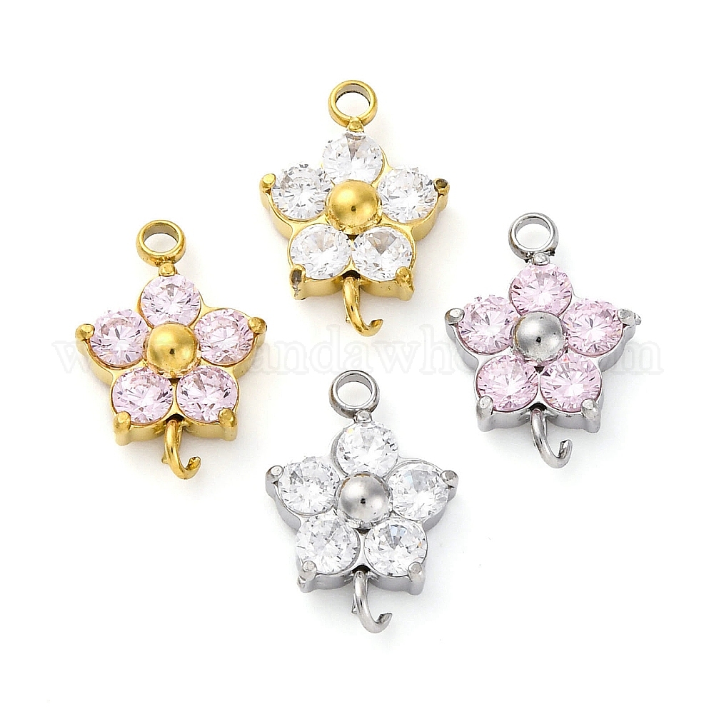 304 подвески-цветочки из нержавеющей стали с микропаве из кубического циркония