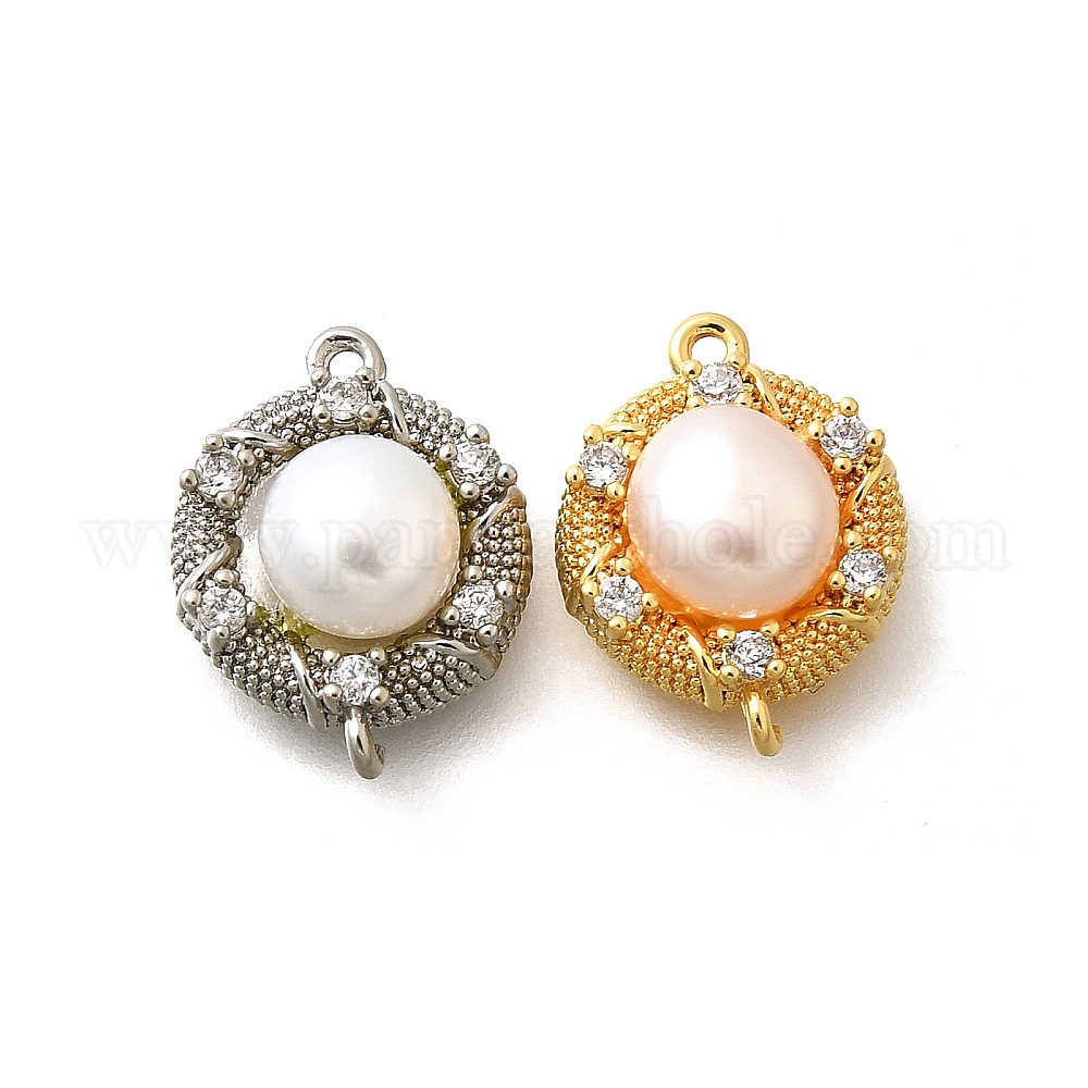 Латунные прозрачные кубические цирконии плоские круглые звенья соединительные подвески, без кадмия, без никеля и без свинца, с натуральным пресноводным жемчугом