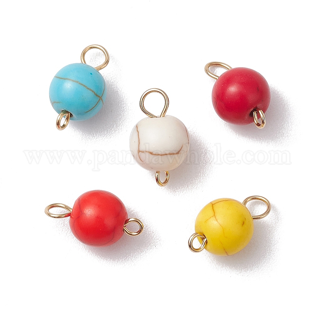5 шт. 5 цвета крашеные синтетические бирюзовые круглые соединительные подвески, с 304 двойными петлями из нержавеющей стали, золотые
