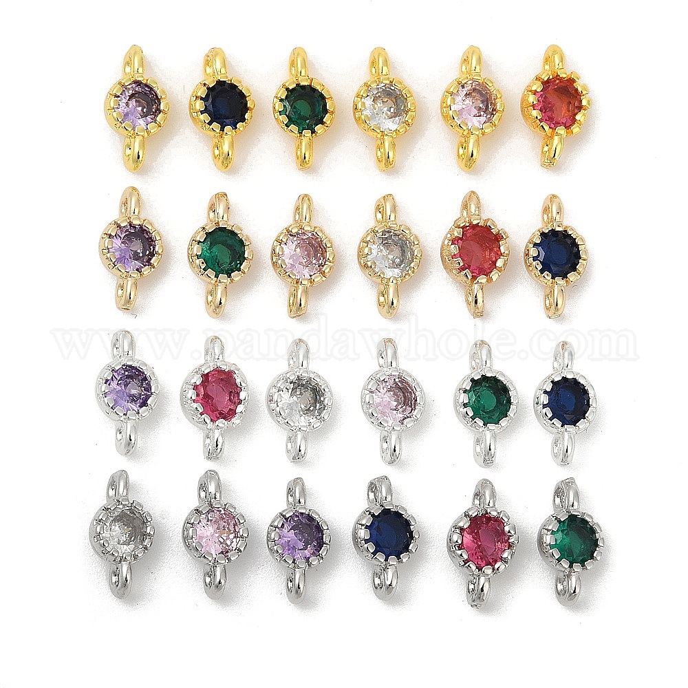 Латунные плоские круглые подвески-соединители из кубического циркония, стойки покрытие, долговечный (03255X)