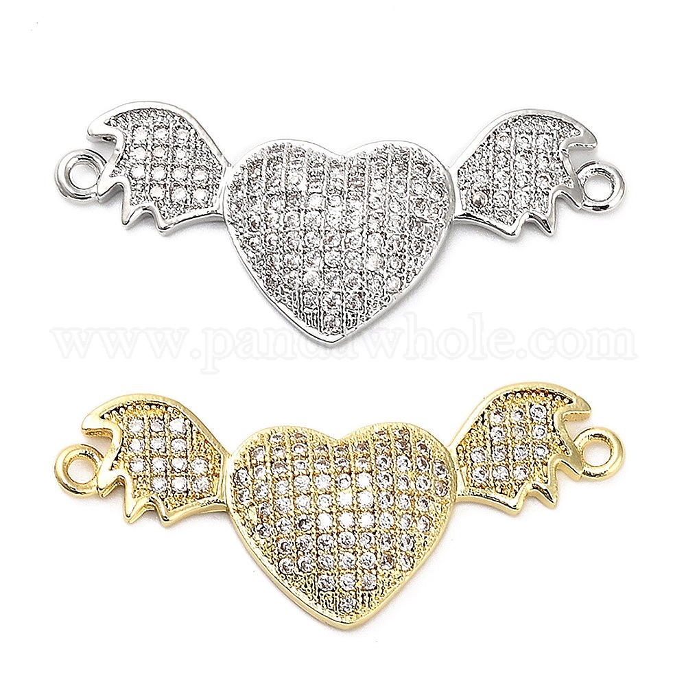 Подвески-шармы в форме крыльев летучей мыши с микропаве из латуни и прозрачным кубическим цирконием в форме сердца, стойки покрытие, долговечный, без свинца и без кадмия