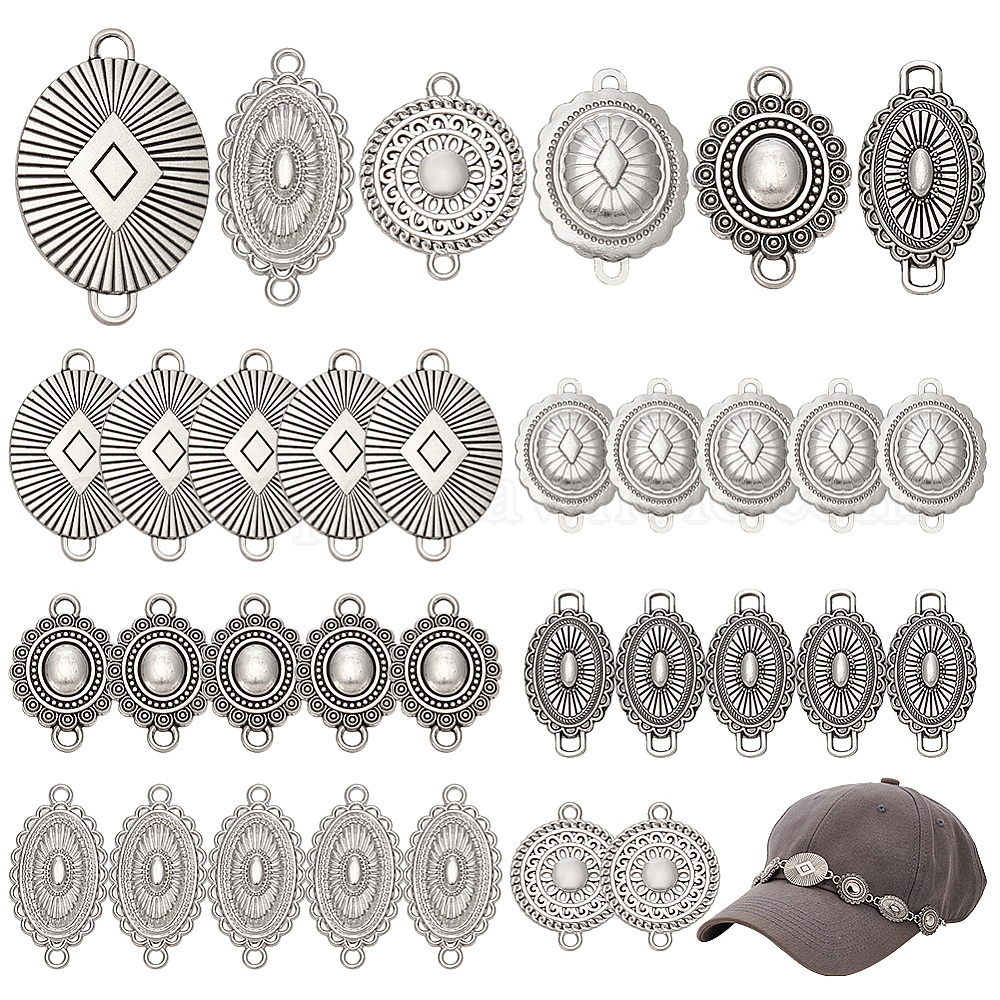 овал: 42 мм в длину, шириной 26 мм , толщиной 4 мм , отверстие : 1.5 мм, 6 шт;