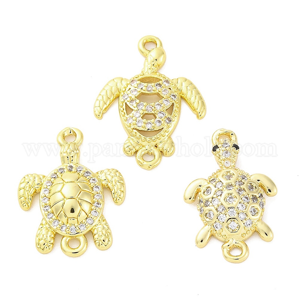 Шармы-соединители из латуни с микропаве из прозрачного кубического циркония, без кадмия и без свинца, ссылки на черепаху (03287Z)