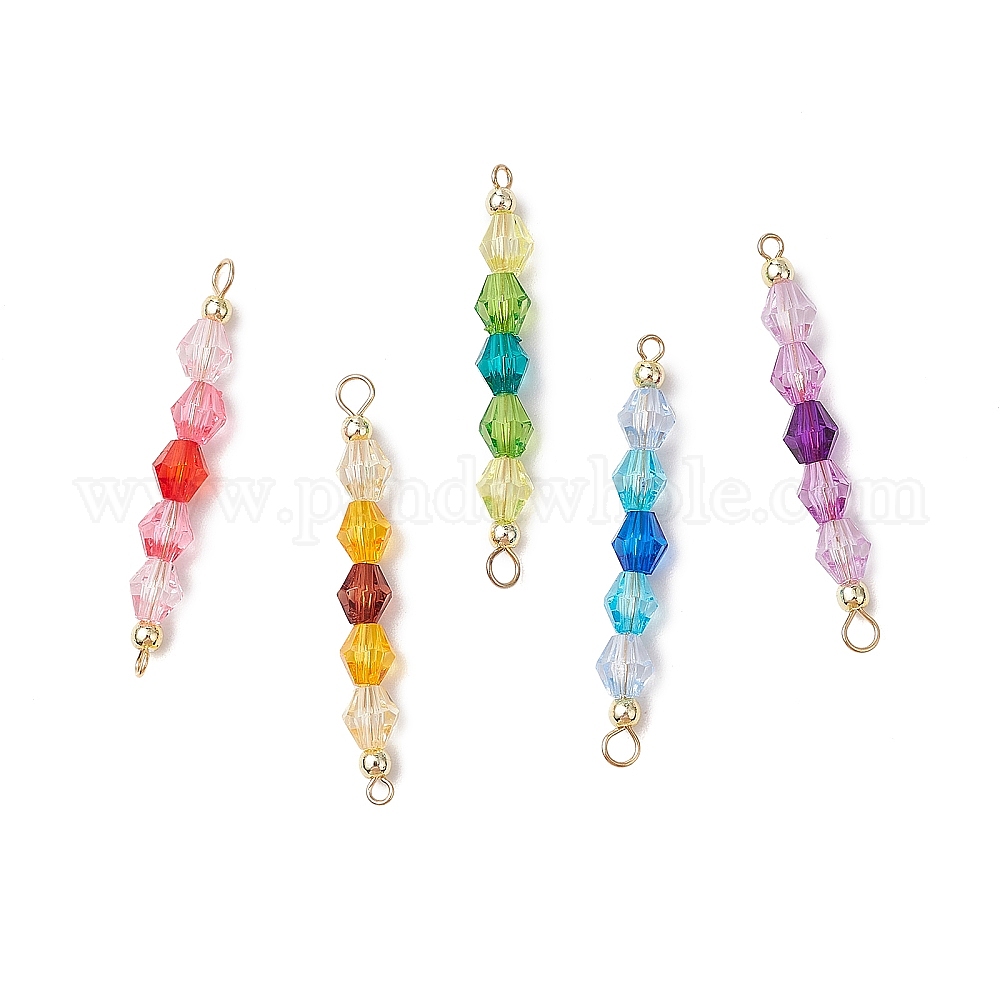 5 шт 5 цвета акриловые биконические бусины соединительные подвески, с 304 петлями из нержавеющей стали и синтетическими немагнитными гематитовыми бусинами, золотые