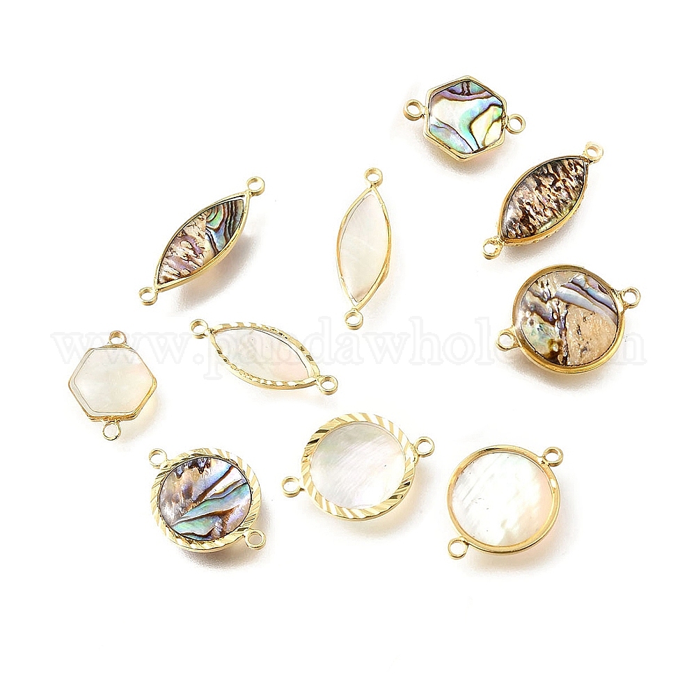 Подвески-коннекторы из натуральной латуни с паве, с эпоксидной смолой, плоские круглые шестигранные звенья с конским глазом, золотые