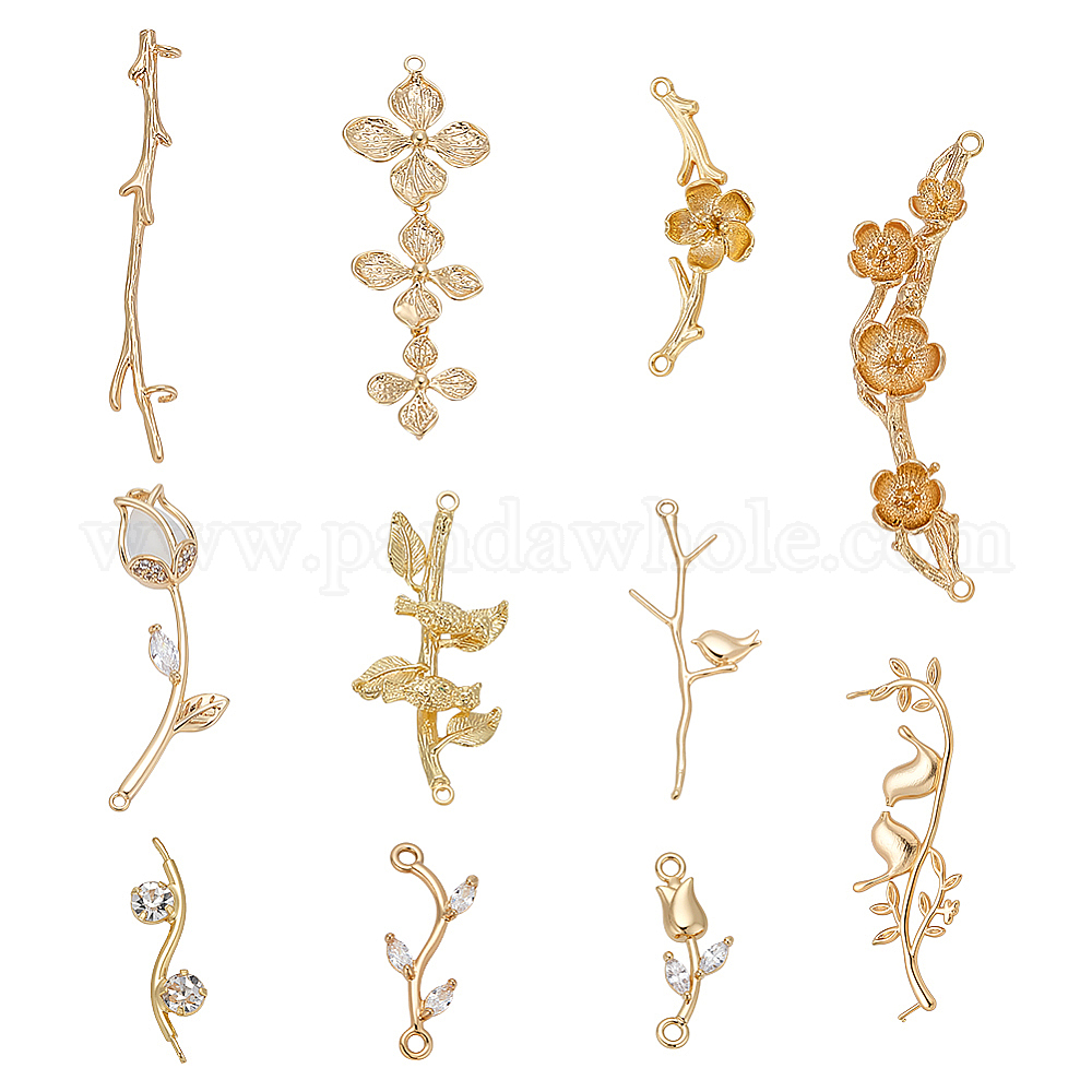 11шт 11 стили латунные подвески для разъемов, с прозрачным фианитом и стеклом, разнообразные