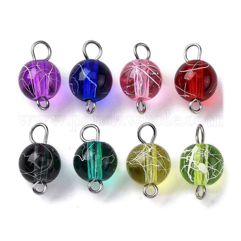 • (52) Непрозрачная лаванда Волочильный станок, окрашенный распылением прозрачного стекла, круглые соединители, подвески, с 304 двойными петлями из нержавеющей стали, цвет нержавеющей стали, разноцветные, 14x8 мм, отверстия : 1.6 mm и 2.3x2.8 мм