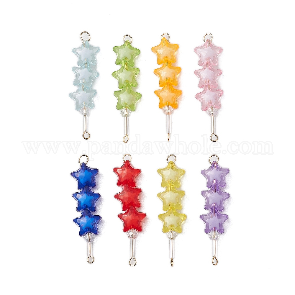 • Золотой 8 шт. 8 цвета акриловые и стеклянные звездочки бусины соединительные подвески, с 304 двойными петлями из нержавеющей стали, разноцветные, золотые, 43~43.5x11x7 мм, отверстие : 2.5x2.5 мм, 1 шт / цвет