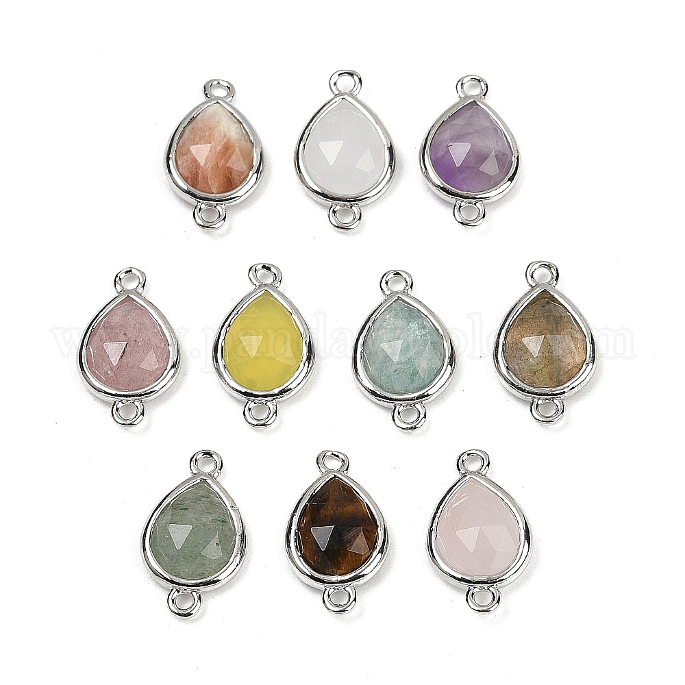 Подвески с граненым соединителем из натуральных драгоценных камней, покрытие стойки латунными каплевидными звеньями, платина / золотой