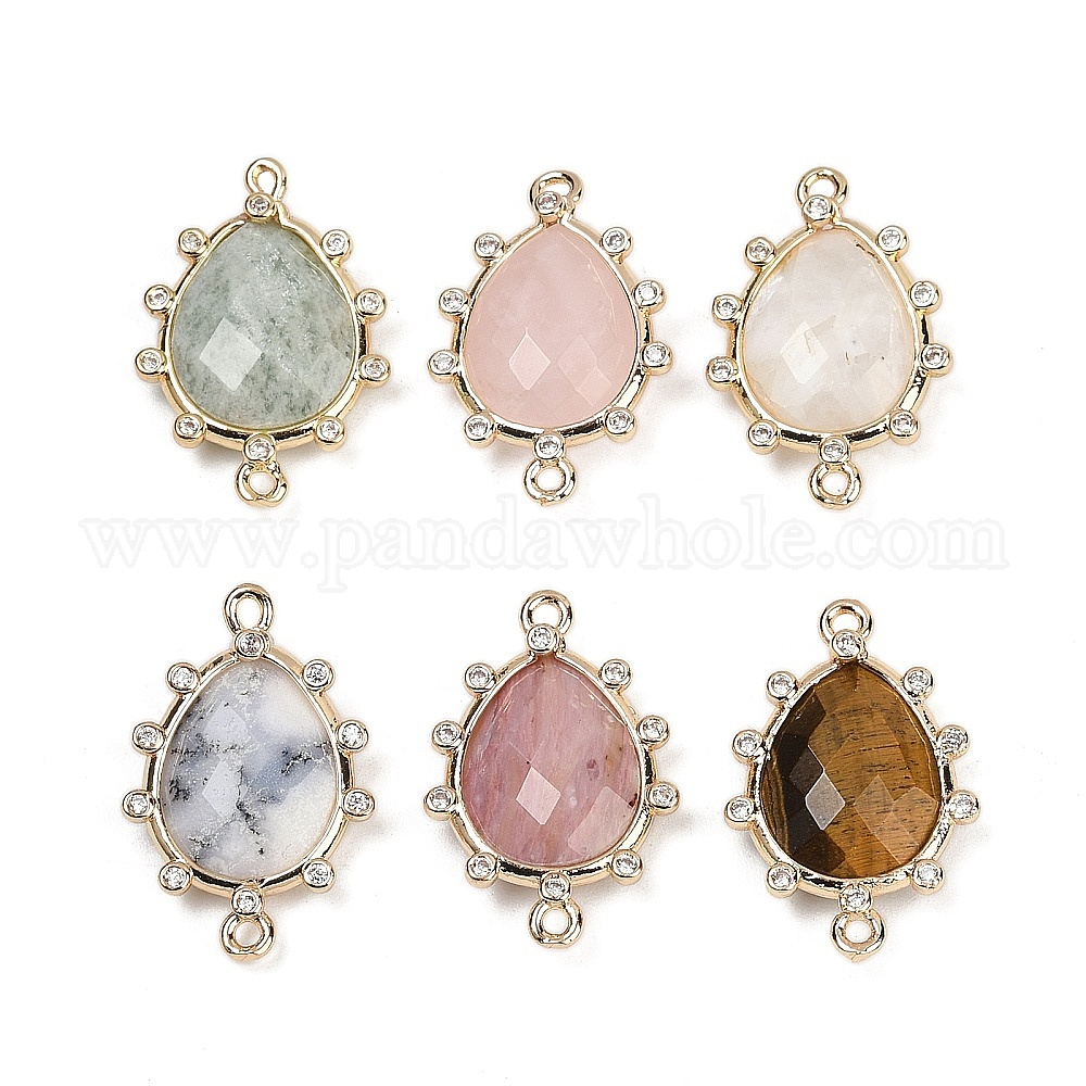 • Смешанные камни Подвески с граненым соединителем из натурального смешанного камня, стойка покрытие латунь прозрачный кубический цирконий каплевидные звенья, золотые, 22.5~23x15x5 мм, отверстие : 1.4 мм