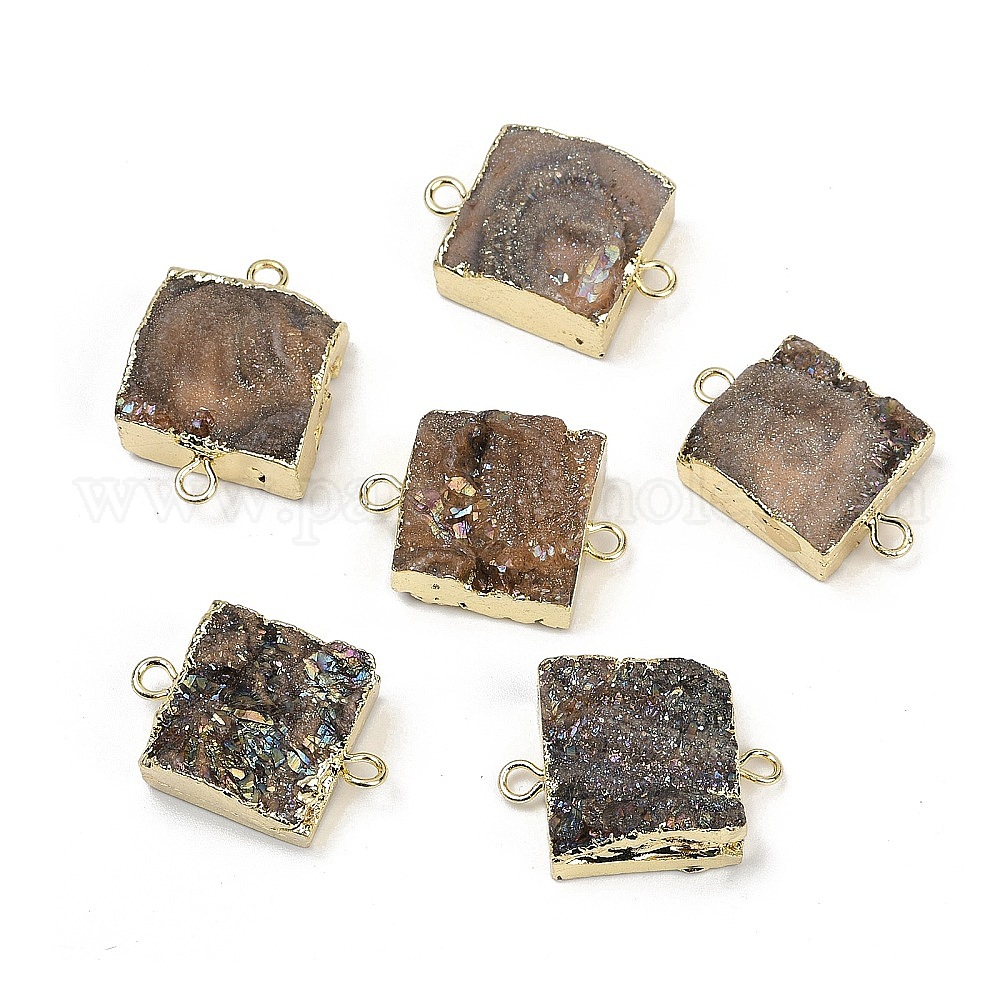Гальванизированные натуральные друзы агатовые подвески-коннекторы, квадратные подвески с латунной фурнитурой, золотые