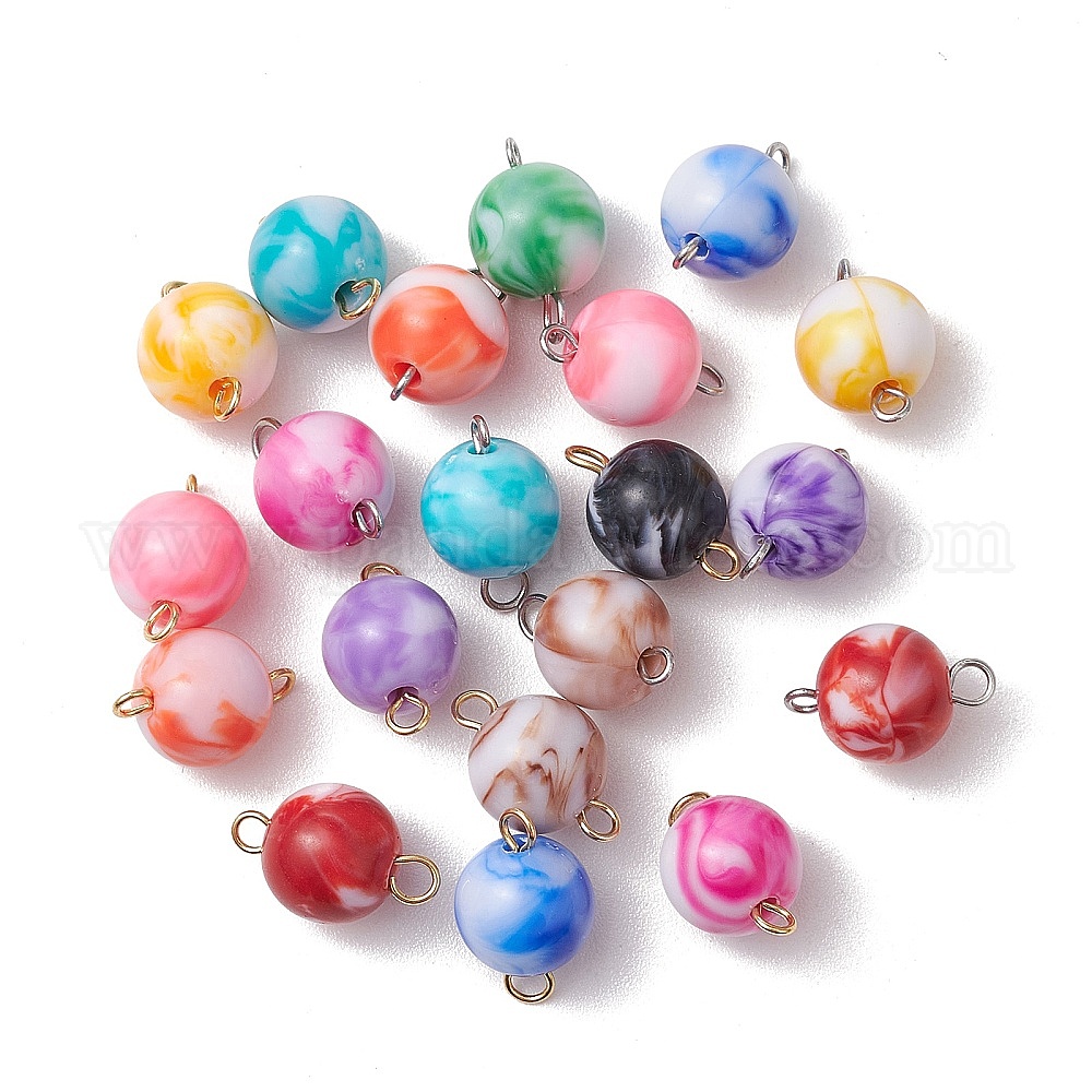 20 шт. двухцветные непрозрачные акриловые круглые соединительные подвески, с 304 петлями из нержавеющей стали, золотые