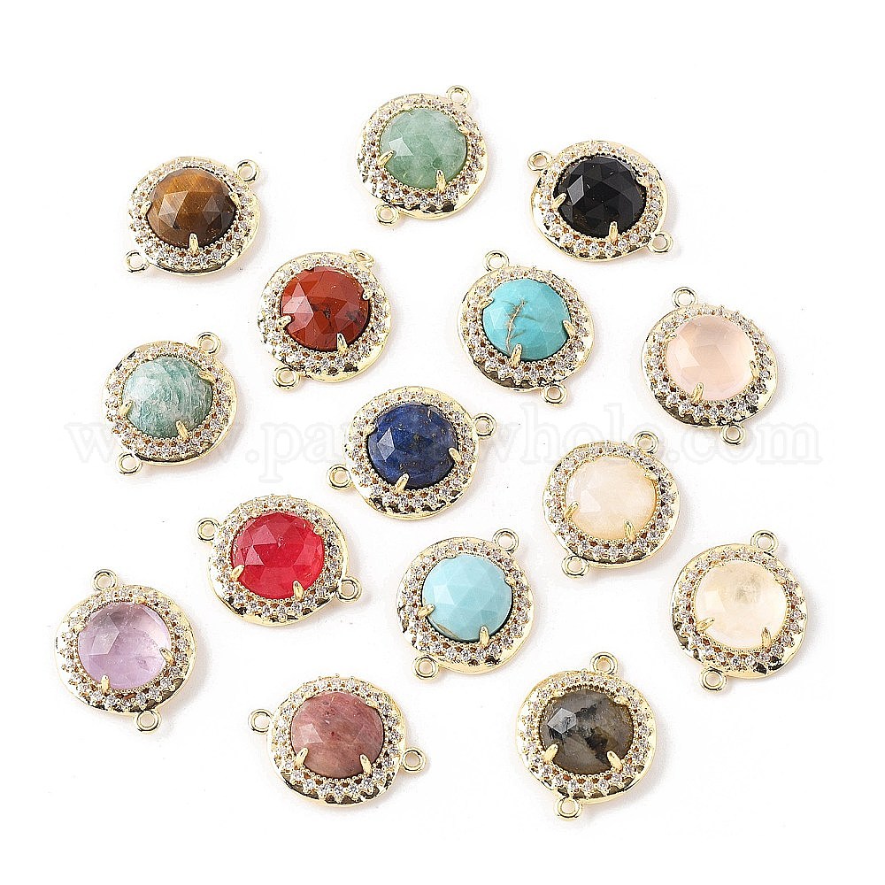 Подвески-коннекторы с гранеными драгоценными камнями, латунные микро-паве прозрачные кубические цирконии плоские круглые драгоценные камни звенья, золотые, стойки покрытие