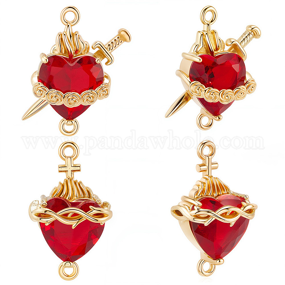 6 шт. 2 стили латунные подвески-шармы в виде сердца из огнеупорного кирпича с кубическим цирконием и мечом/священным сердцем Иисуса