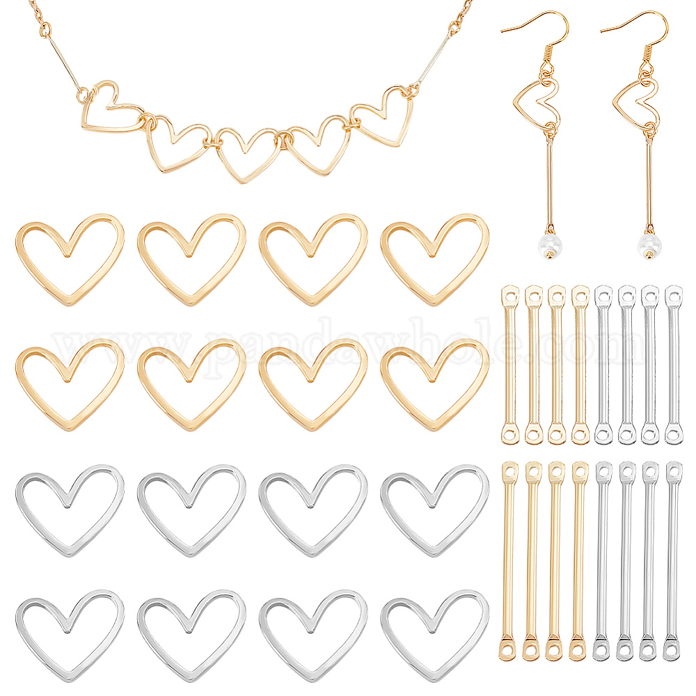 76 шт. 6 стильные латунные соединительные подвески-палочки, панель ссылок, с сердечком