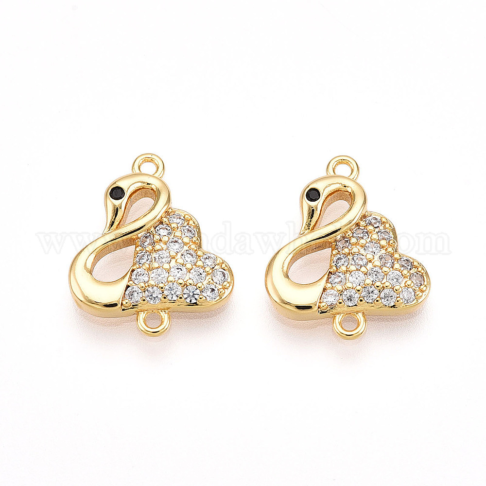 Шармы-соединители из латуни с микропаве из кубического циркония, без кадмия, без никеля и без свинца, лебедь с сердцем