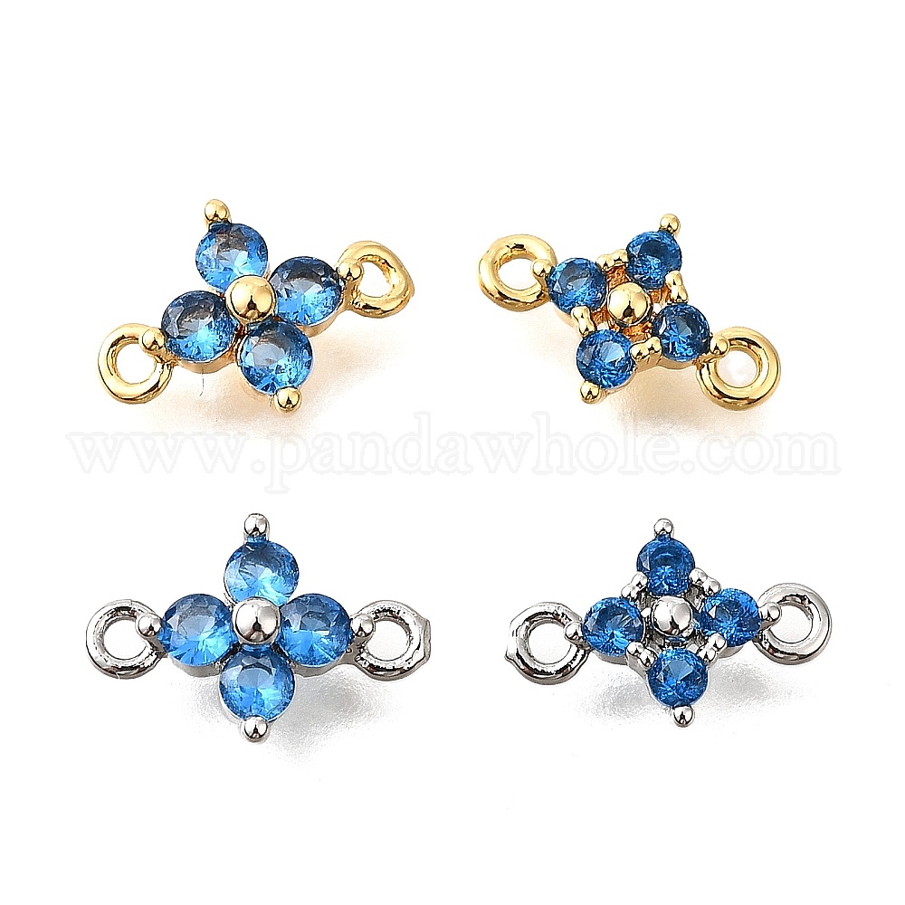 Звенья из латуни, микропаве, синие кубические циркония, без кадмия, без никеля и без свинца, цветок