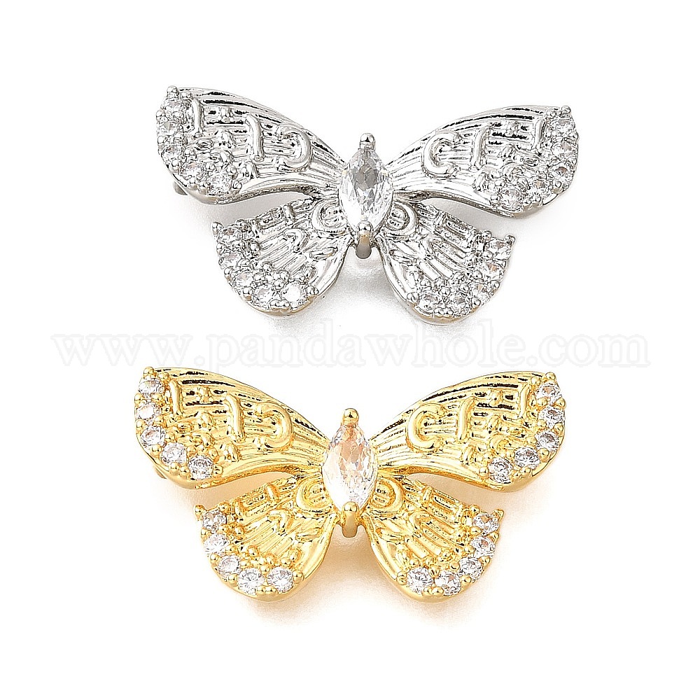 Звенья из латуни с прозрачным кубическим цирконием, без кадмия, без никеля и без свинца, бабочка (032YKK)